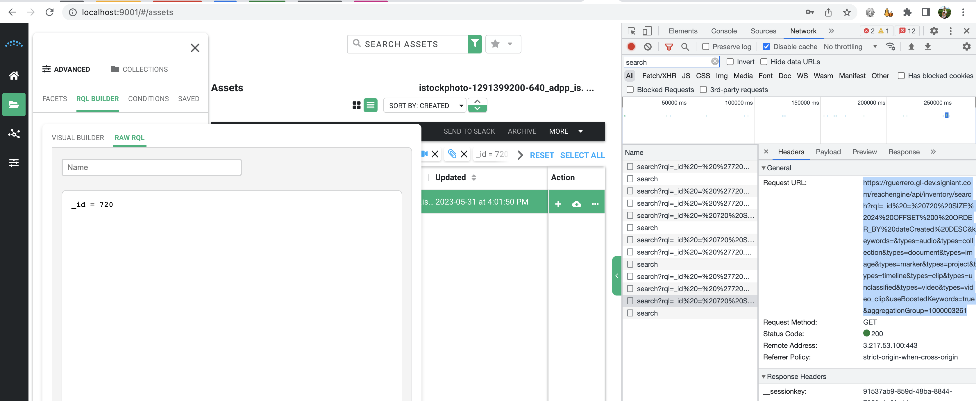 RQL Queries available for Image, Video, Audio, Project, Video Clip, Document Reach Data.