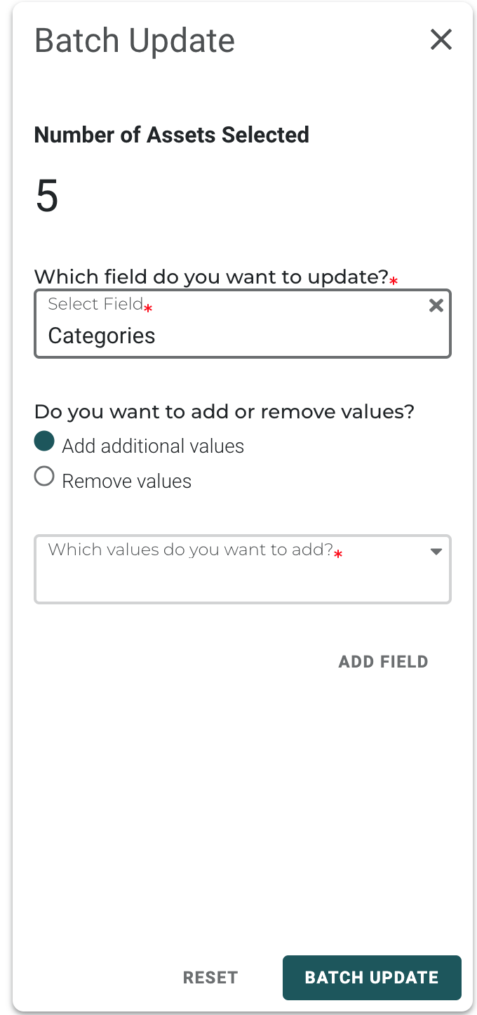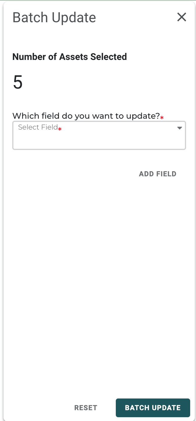 Batch Update lets you make changes to multiple assets at once. You must have appropriate permissions to access this feature.