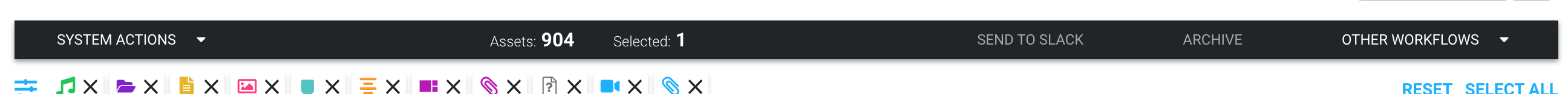 You can filter the asset grid by asset type by selecting or deselecting the asset type icons.