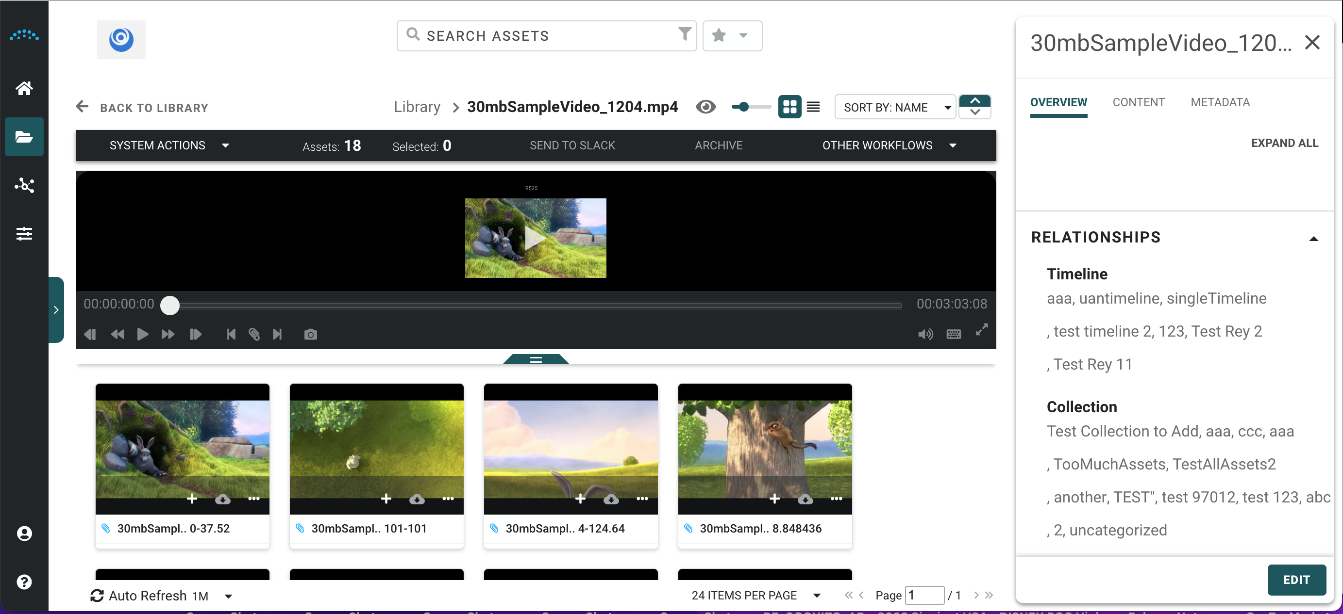 When you double-click an asset from the Dashboard, it opens in the Single Asset (or unified) View. From this view, you can preview your content, edit metadata, or create clips.