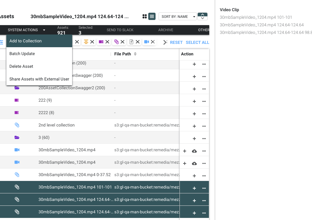 - If multiple assets are selected, select the System Actions menu in the upper left of the asset list.