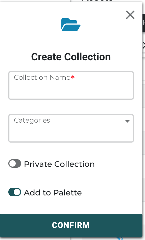 - Select the Collections box and select a collection to add the asset, and click Confirm.